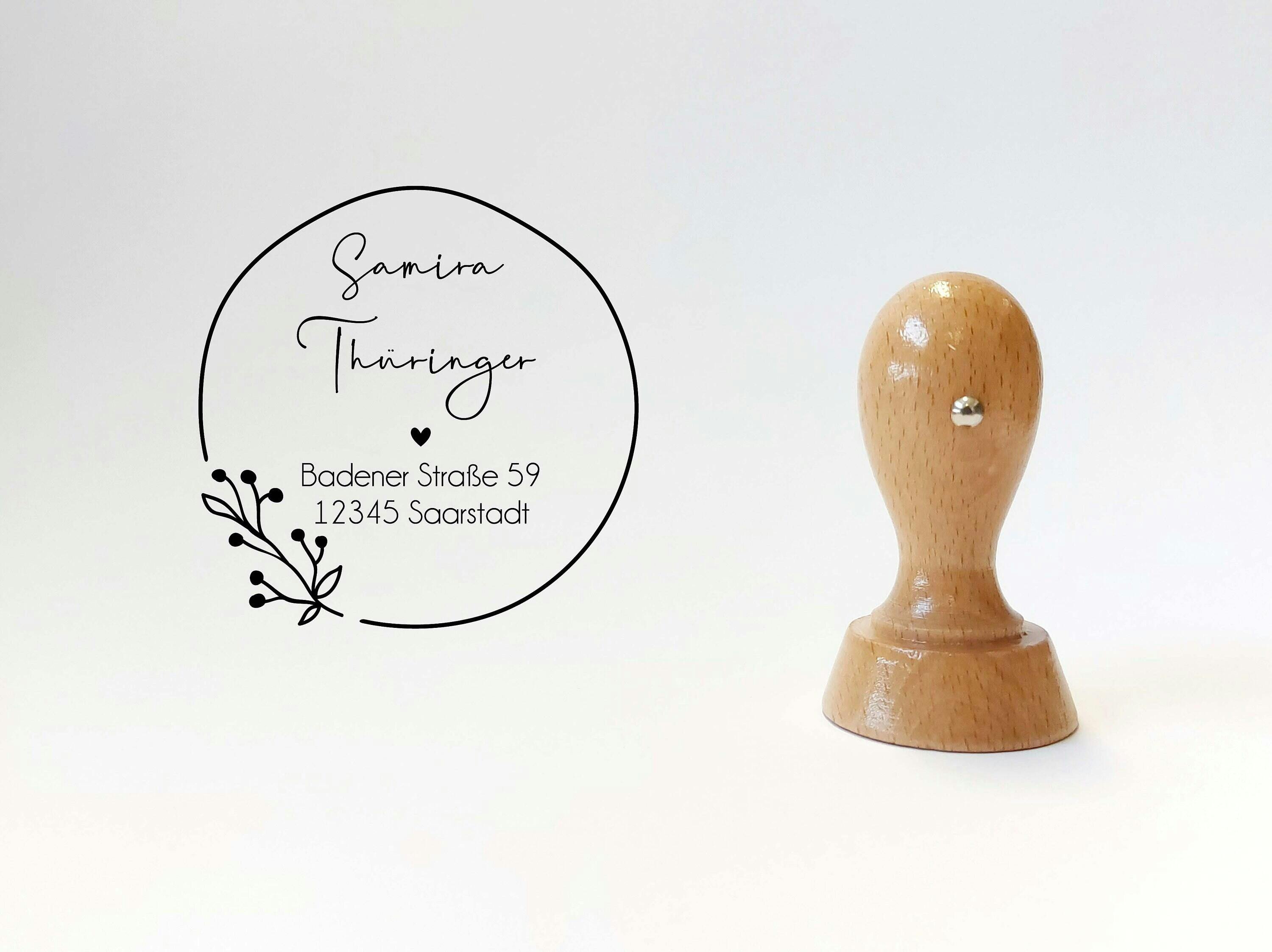 Personalisierter Adressstempel, Holzstempel Rund 43 mm, Stempelkissen Schwarz optional, Stempelgummi, Holzstempel Rund 60 mm