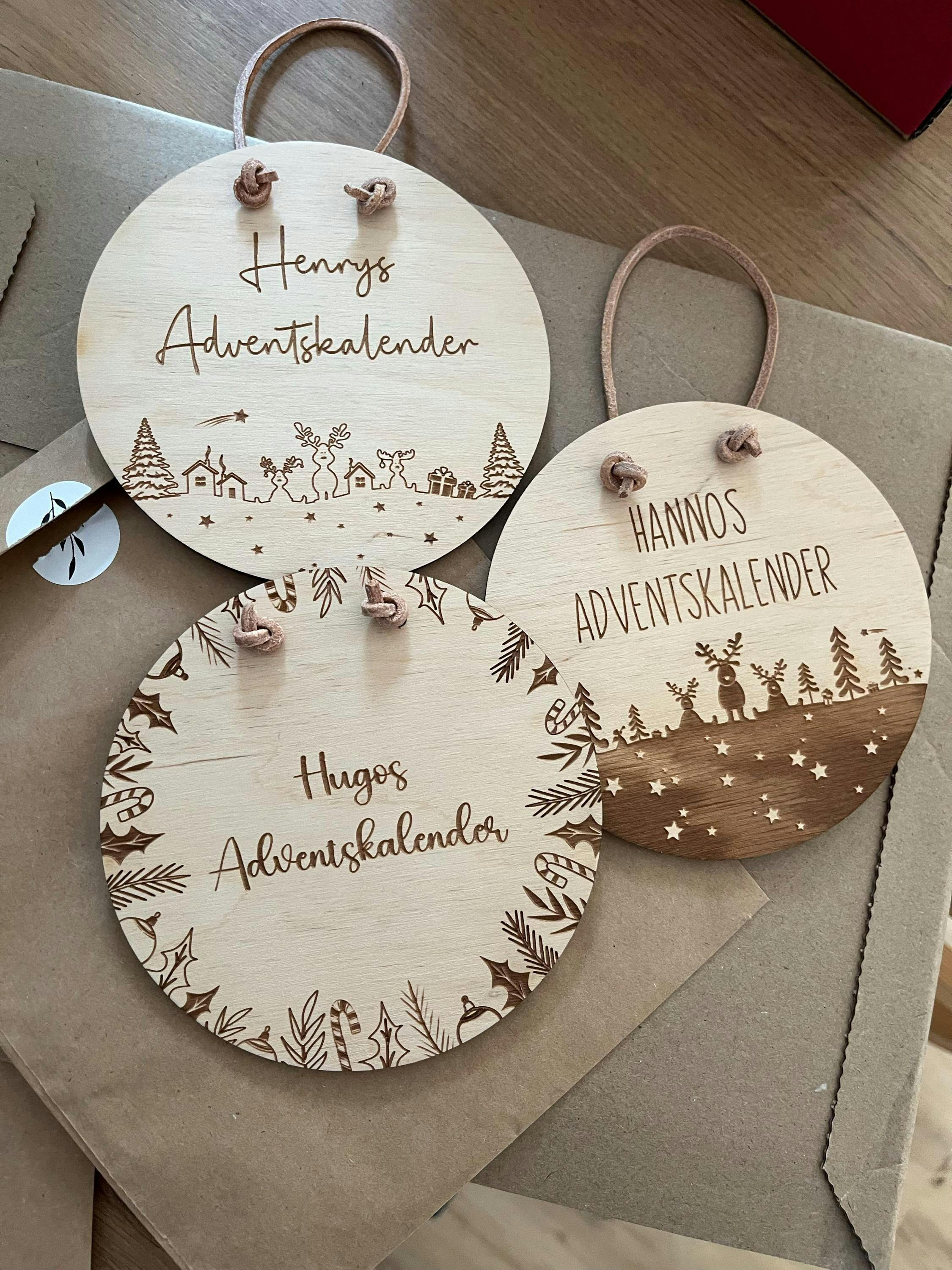 Das Namensschild, die Holzzahlen, sowie die weitere Holzdeko sind zum selbst aufkleben. So kannst du dir deinen ganz eigenen und individuellen Kalender gestalten. Zum Aufkleben der Holz-Elemente eignet sich jeder Bastelkleber oder Heißkleber.