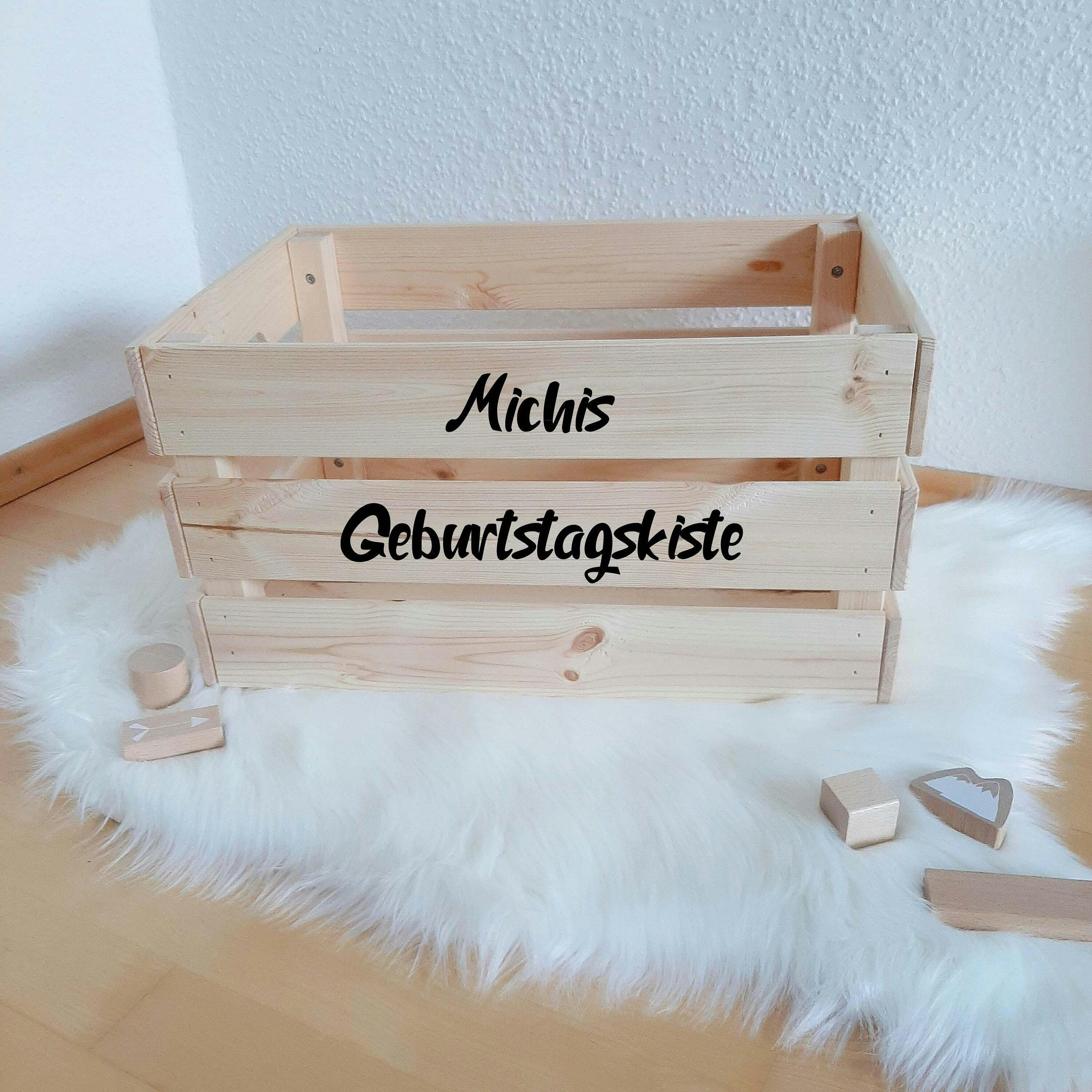 Geburtstagskiste mit Name zum selbst Befüllen | Geschenkidee Räuberkiste / Überraschungskiste/ Schatzkiste | personalisierte Aufkleber