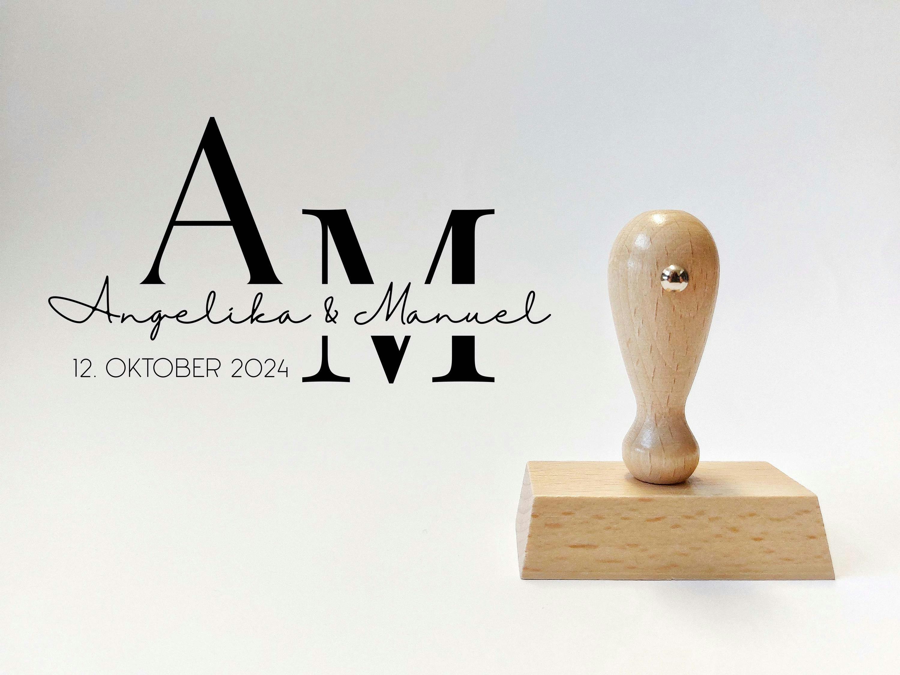 Hochzeitsstempel | Personalisierter Stempel | Brautpaar Anfangsbuchstaben mit Namen in Schreibschrift, Datum in Druckschrift | Hochzeitspost