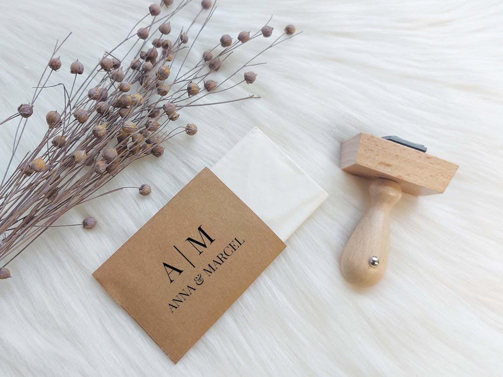 - Hochzeitsstempel: Initialen & Vornamen Stempel (vgl. Bild)