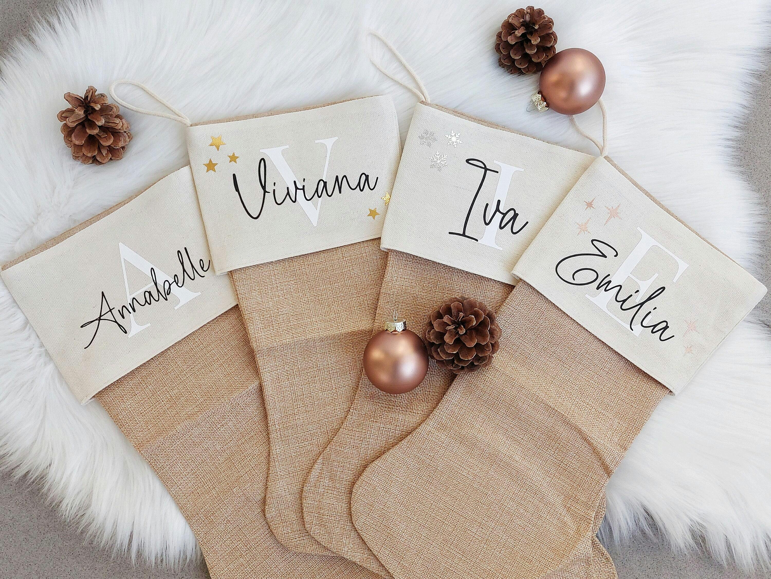 Nikolausstiefel Name & Initial | Personalisiert Kamin Stiefel zum Aufhängen | Weihnachtsstiefel mit Symbole für Weihnachtsgeschenke
