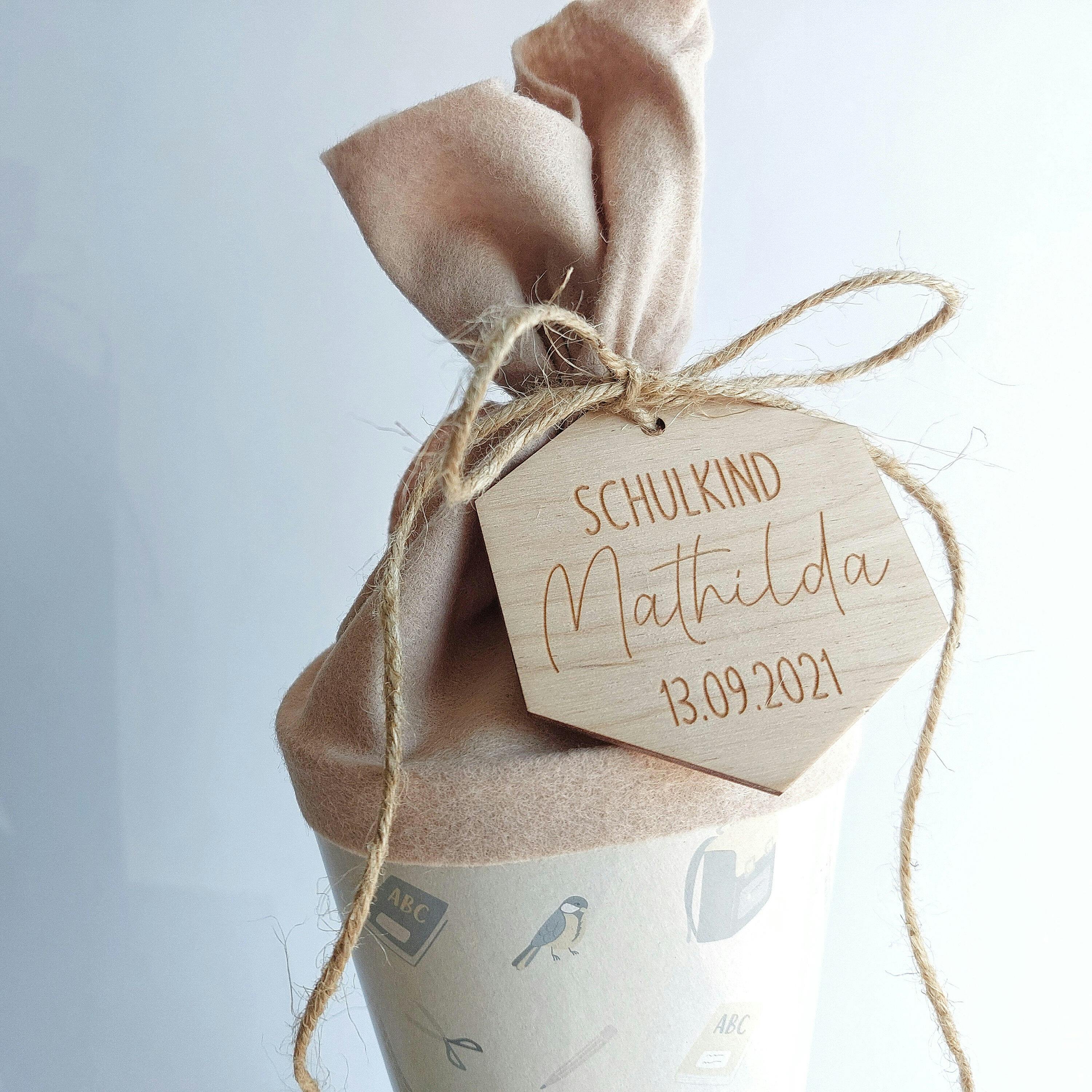 Vom Kindergarten in die große Schule. Mit diesem personalisierten Schultüten-Namenschild aus Holz, haben eure Kinder ein Andenken an diesen besonderen Tag, ein Leben lang.